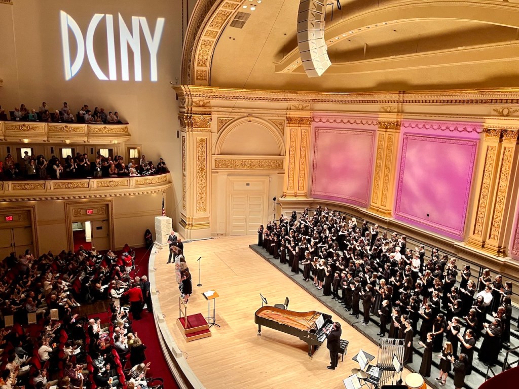前半场,Greg的作品,包含拉丁文的编曲Gloria in Excelsis Deo!(《荣耀归于上帝》)、We Sing! We Rise! We Soar! (《我们歌唱!我们崛起!我们翱翔!》)和Hope is a Waking Dream(《希望是一场醒来的梦》)。其他作品包括两首民歌,一首是希伯来民歌,另一首来自托雷斯海峡群岛,还有Arcadelt “Ave Maria”(雅各布·阿卡德尔特的无伴奏合唱《圣母颂》)和Robert T. Gibson “Dance” (罗伯特·吉布森的《舞蹈!》)。整体风格属于合唱+民谣,虽然朴素无华,但对于各民族文化的追溯,听起来依然十分舒服。然而演出出现的反复元素,例如拍手跺脚,可能会让听众感到厌倦,但介于DCINY的合唱团来自五湖四海,作品本身也更倾向于孩子对音乐的热爱。